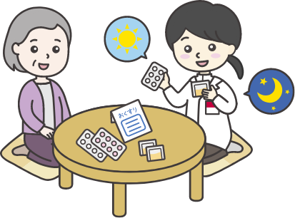 例えば、効果が重複している薬の整理、服薬のタイミング変更、薬の形状変更、薬が必要な理由の説明など、さまざまな角度からのご提案をおこないます。