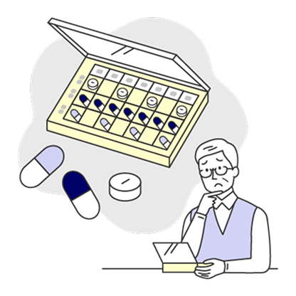 余っている薬を薬剤師が確認し、薬を整理します。あわせて、お薬カレンダーの活用や一包化など、薬の飲み間違いを防ぐための一人ひとりに合った整理方法をご提案します。