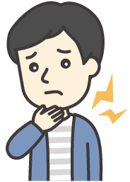 喉の痛みは、ウイルス感染によって粘膜が炎症を起こし、痛みを引き起こす物質が作られることが原因です。喉の奥にイガイガとした不快感や痛みを感じます。また、鼻づまりから口呼吸になることで喉が乾燥し、痛みが悪化する場合もあります。