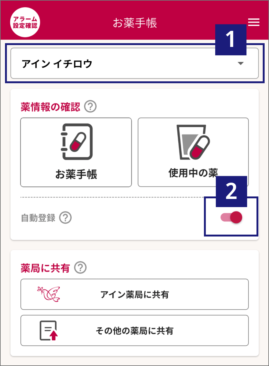 お薬手帳 自動登録の設定変更