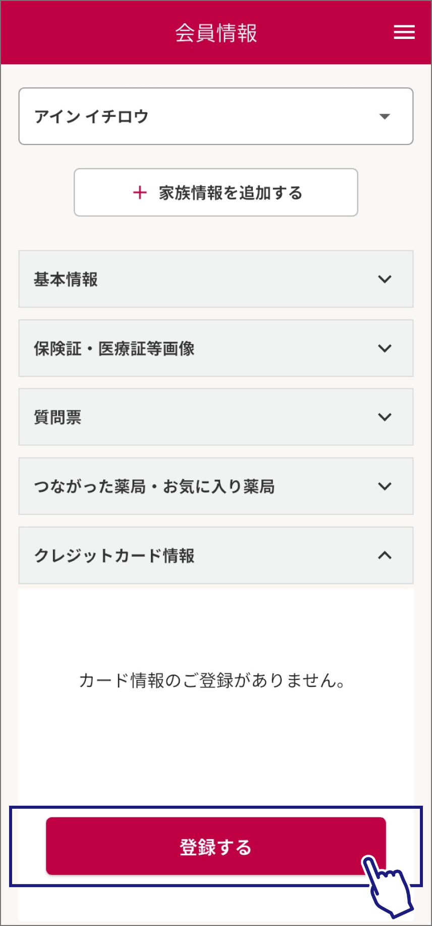 ※クレジットカード情報を登録できるのは、本人会員のみとなります。また、登録可能なカード情報は1件のみです。