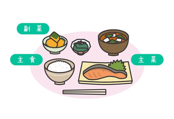 まずは、主食・主菜・副菜を意識するようにしましょう。