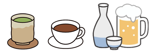 脱水症の原因として、お茶やコーヒー、酒類など利尿作用のある飲み物を飲みすぎることで、尿量が増え摂取する水分量よりも失われる水分量が多くなり脱水につながる場合があります。