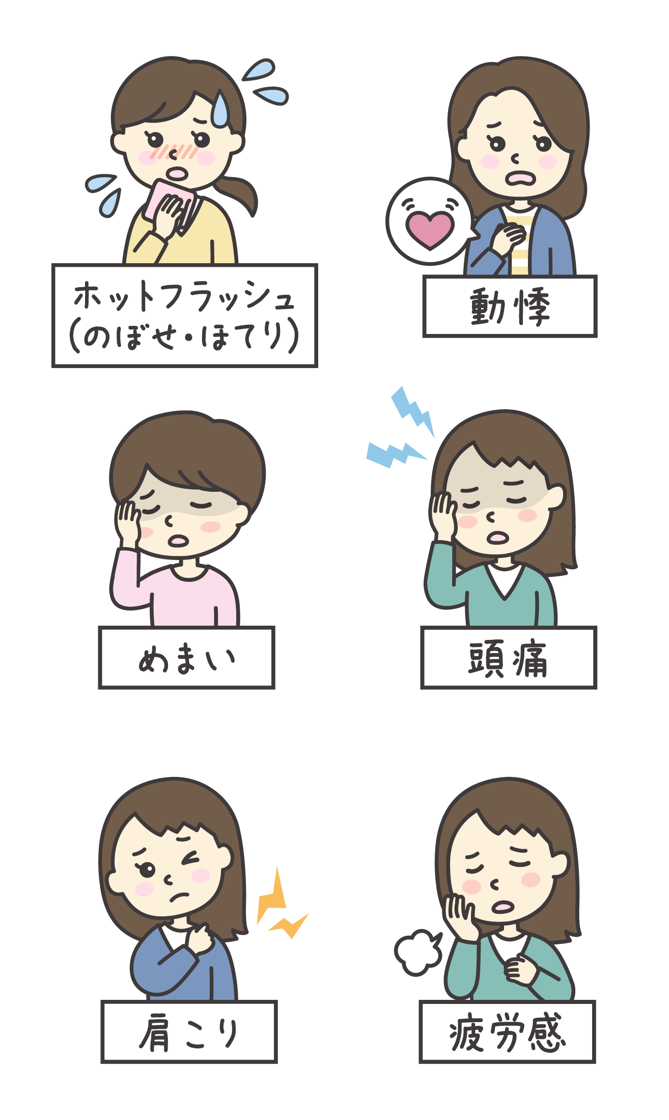 例えば、イライラやのぼせ、発汗、眠れないなどが代表的な症状です。症状の現れ方や程度には個人差がありますが、中には日常生活に支障をきたすほど強く出る方もいます。
