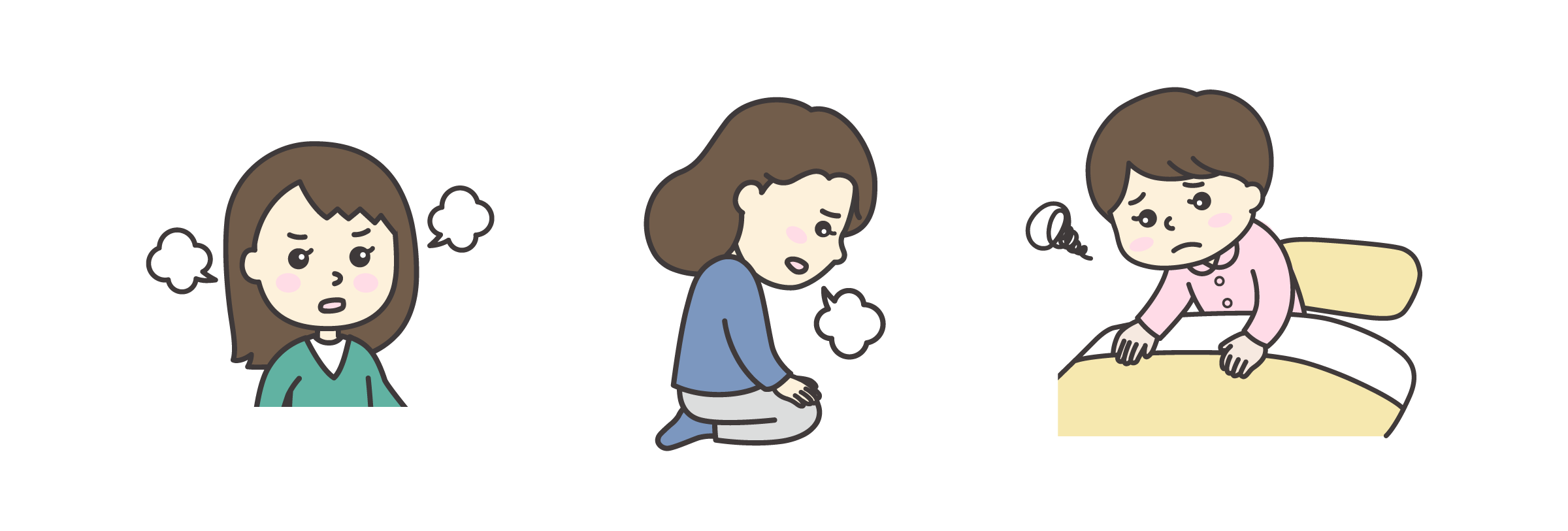 身体的な症状では、異変に気づきやすいものも少なくありません。ひとつの症状が強く出たり、複数の症状が混在するケースもあります。