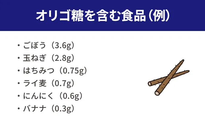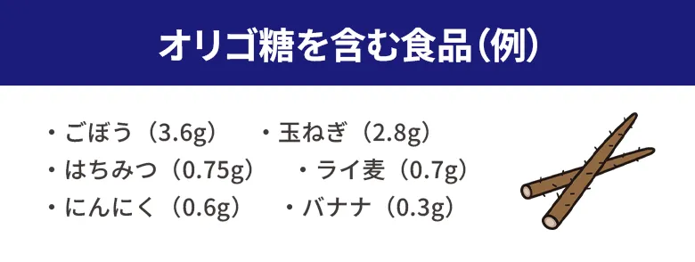 オリゴ糖は、人間の小腸では消化・吸収されにくく、大腸まで届いてビフィズス菌のエサになります。オリゴ糖を摂取すると、ビフィズス菌が増えて腸内環境が改善され、おなかの調子を整える効果が期待できます。