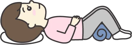 横向きで寝るときも膝を少し曲げて寝ると、腰の痛みがやわらぎます。さらに、両膝の間に丸めたタオルや毛布、クッションなどを挟むと、身体が安定し楽に感じられるでしょう。