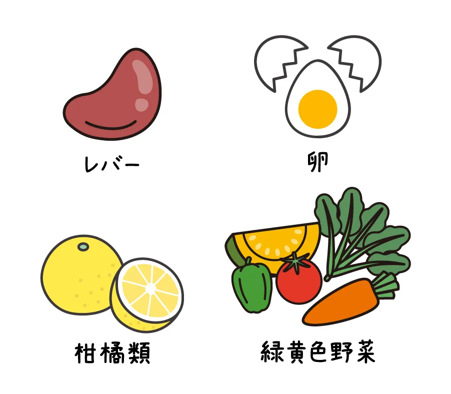 豚肉、レバー、緑黄色野菜 など