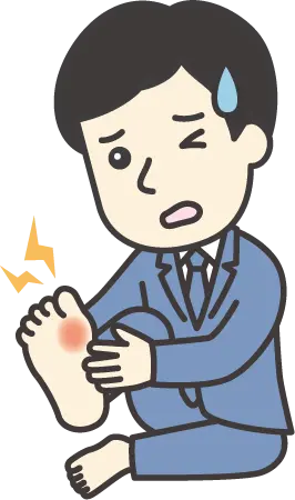 痛風は前触れもなく突然起こり、歩けないほどの激痛に襲われます。発作的に症状が出るため「痛風発作」と呼ばれます。 発症部位は足の親指の付け根が最も多く、次いで足首や足の甲、ひざ、ひじ、手首などの関節にも現れます。いずれの部位も、赤く腫れて熱を持つのが特徴です。