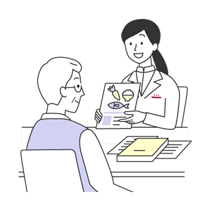 栄養支援の一環として、栄養士が在籍する一部の薬局では、個別栄養相談などを実施しています。健康な生活を送るために、栄養バランスの良い食事は必要不可欠です。患者さま一人ひとりの年齢に合わせた食事の摂り方や、調理法、献立などを栄養士がご紹介いたします。